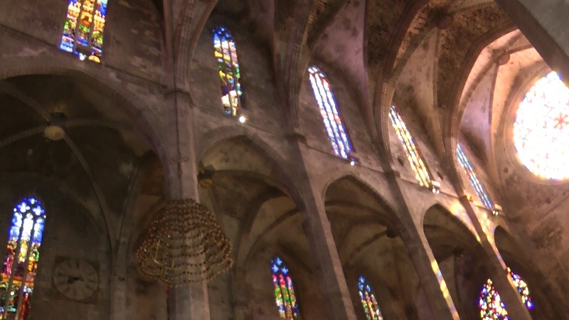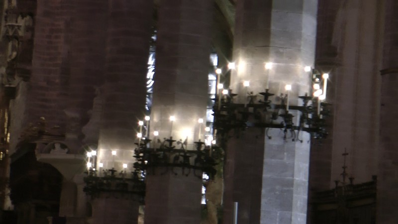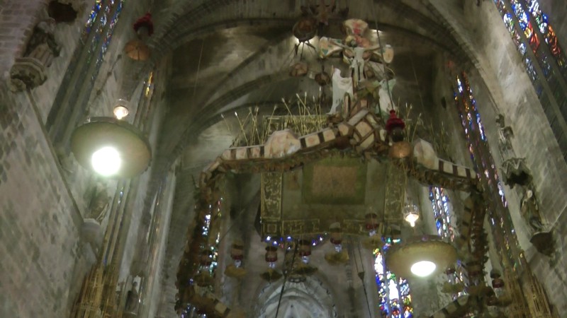 | Auch der berühmte Architekt Antoni Gaudí steuerte durch seine Restaurierungs- und Dekorationsarbeiten in den Jahren 1904 bis 1914 auf Initiative des Bischofs Campins seine Kunst im Stil des katalanischen Modernisme (Jugendstilrichtung) bei. Gaudí nahm auch einschneidende bauliche Veränderungen vor: der Chorraum wurde aus der Mitte des Kirchenschiffs verlegt und in die Königskapelle eingegliedert; der Stuhl des Bischofs, aus dem 14. Jahrhundert, wurde erneuert und die Gläubigen erhielten freien Blick auf den Hochaltar. Unter dem Chorgestühl entwarf Antoni Gaudi einen Hohlraum, damit sich der Gesang, auch ohne Mikrofone, in der gesamten Kathedrale verbreiten kann. Der Raum ist mannshoch und agiert wie ein Resonanzkasten. Erst etwa 100 Jahre danach, bei Renovierungsarbeiten, wurde der Hohlraum wiederentdeckt. (Text aus Wikipedia) |